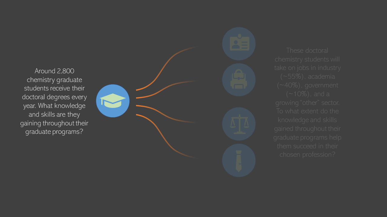 Over 20,000 chemistry students are currently enrolled in a chemistry doctoral program across the country. These students are receive training over the course of five and half years (on average) before they are off to find employment in industry, academia, government, and other job sectors. They are teachers, researchers, consultants, producers, managers, and host of other titles. With such a variety of careers to take on, doctoral programs have a big shoes to fill in terms of the knowledge and skills that these students will need to successfully obtain and succeed in their careers of choice.